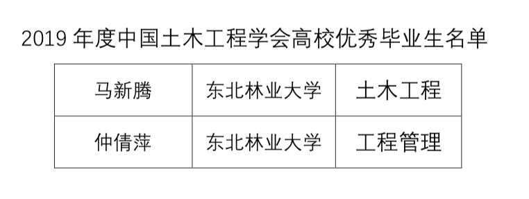 日前,2019年度中国土木工程学会高校优秀毕业生奖公布评选结果,我院毕业生马新腾、仲倩萍两名同学获此荣誉称号,全国仅有清华大学、东南大学和永利官网有两名同学获评。