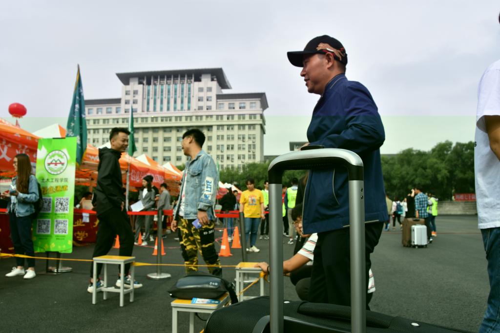 家长在一旁耐心地等待。谁言寸草心,报得三春晖!父母为了我们奔波劳累,希望我们小萌新们来到新校园里都能不负韶华。