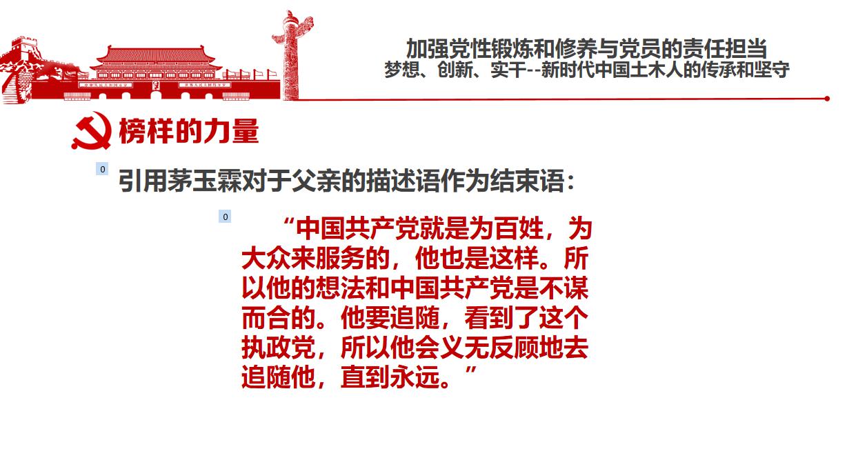 榜样的力量非常巨大,李书记在最后用茅以升先生入党的例子,为大家充分展示一个共产党员应有的责任和担当。