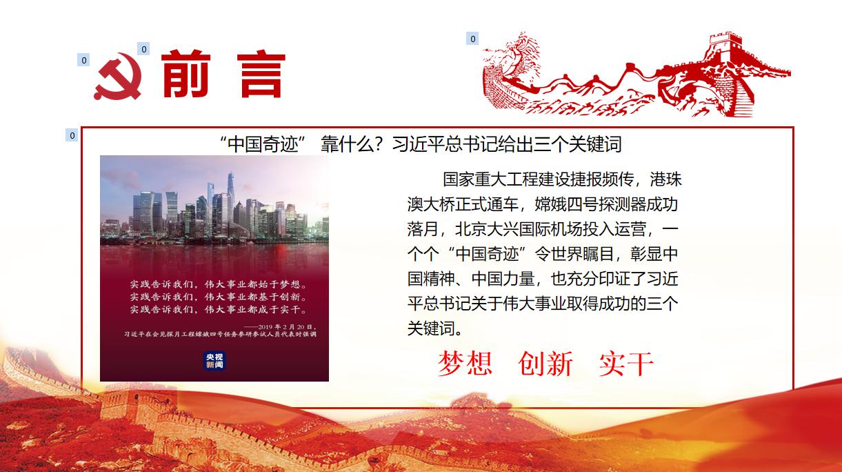 李书记接着引导大家思考这一系列令人称赞的“中国奇迹”背后的原因,大家纷纷认真思索。李书记引用习近平总书记关于伟大事业取得成功的三个关键词:“梦想、创新、实干”回答了这一问题。