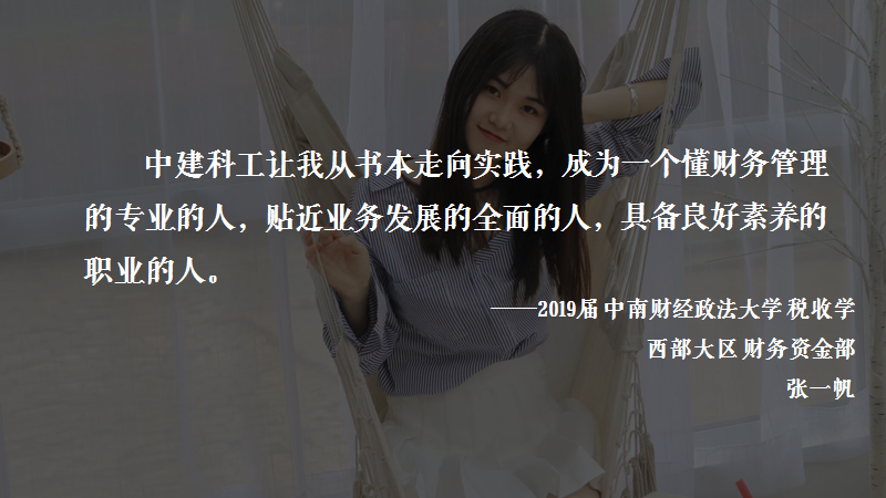 中建科工集团有限公司(原中建钢构有限公司)隶属于世界500强中国建筑股份有限公司,是中国最大的钢结构产业集团。正是这样的平台能给员工提供更多标准化的工作机会和先进思维赋能,得以让王阳在职业生涯拥有一个良好的开端。