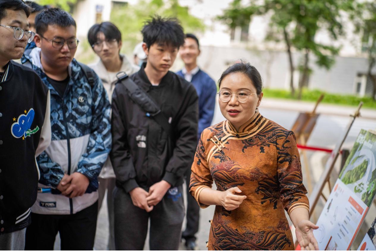 副秘书长刘亚辉为现场师生详细而生动地讲述着展板背后许多的特色创意与非遗故事,“七个鸡窝”改造而来的空间项目、泥咕咕“泥小妮”的文创项目都给大家留下深刻印象。其中,特别提到yL23411永利官网登录师生的作品“栾川县重渡沟风景区非遗民宿改造项目”,“栾小福”的形象IP,瞬间拉近了同学们与非遗创新实践的距离。